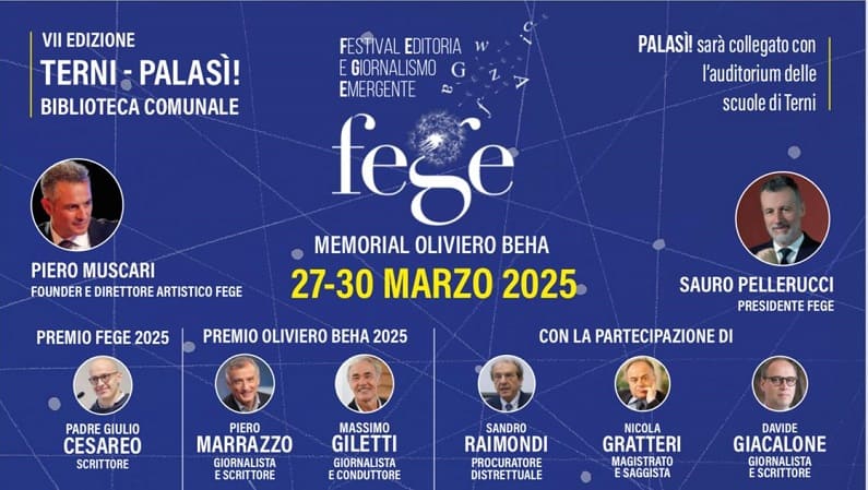 Dal 27 al 30 marzo 2025, il Festival di Editoria e Giornalismo Emergente (FEGE) approda a Terni per la sua settima edizione, confermandosi come un evento imperdibile nel panorama culturale italiano. Grazie alla collaborazione tra Piero Muscari, storytailor e direttore artistico del festival, e Sauro Pellerucci, Founder di Pagine Sì! S.p.A. e Presidente di FEGE, il festival si svolgerà in due location simboliche della città: il PalaSì! e la Biblioteca Comunale di Terni.
